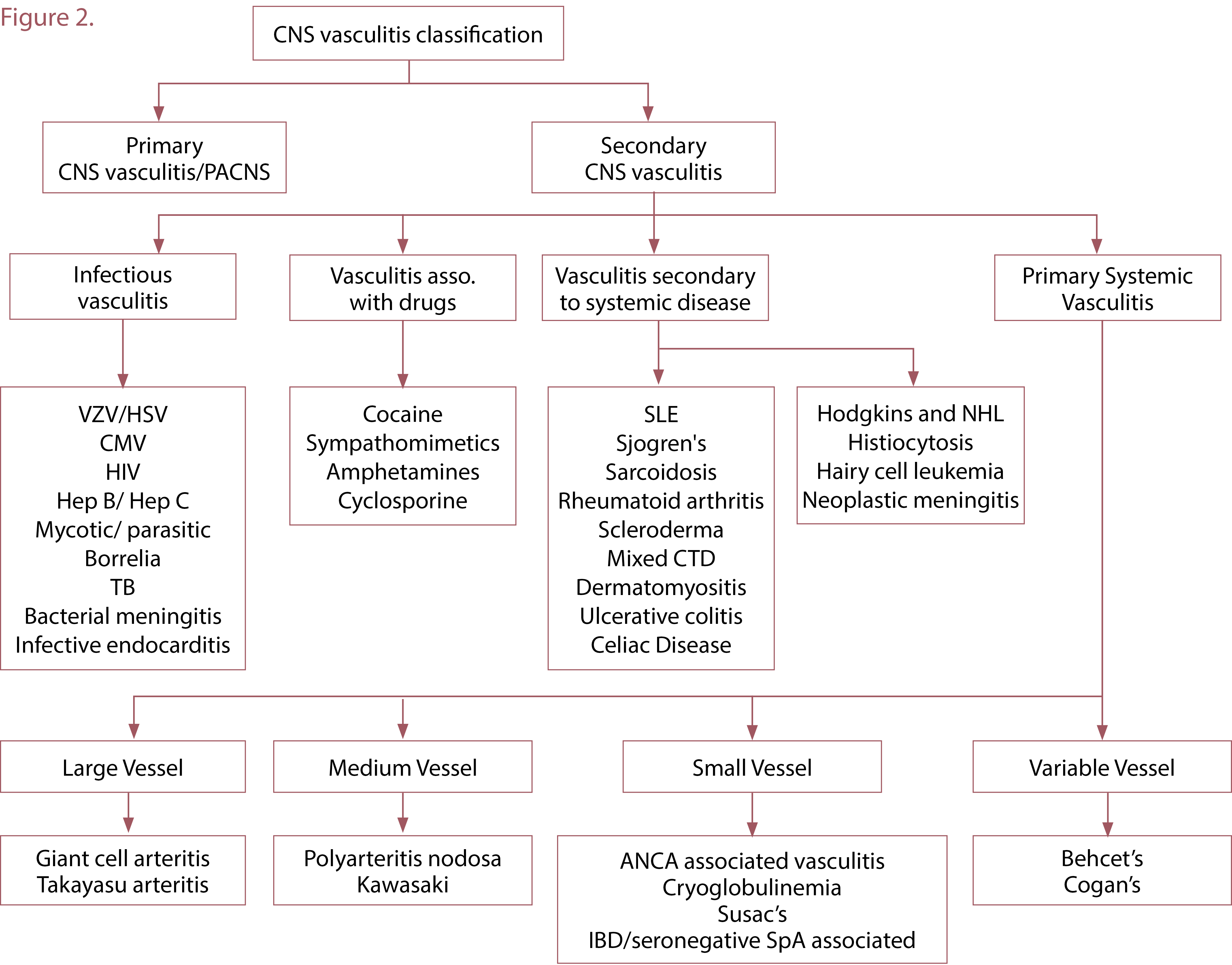 - Secondary CNS-V: vascular inflammation secondary to another systemic process