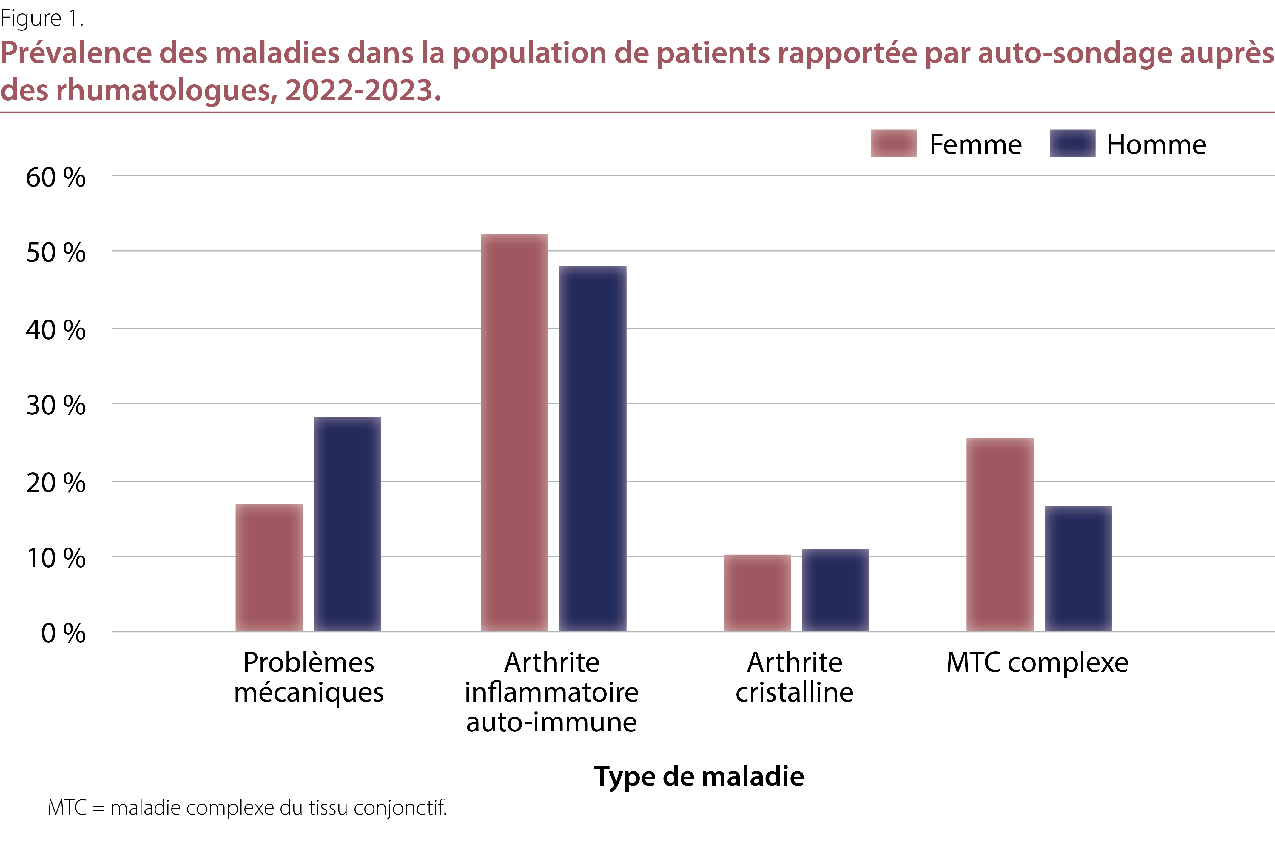 Qu'est-ce qui explique cette disparité? L'un des facteurs clés semble être la façon dont le temps est utilisé. Les femmes ont déclaré consacrer plus de temps à chaque consultation initiale, soit 50,4 minutes contre 40,8 minutes pour les hommes. Les femmes ont également vu plus souvent des patients atteints de maladies complexes du tissu conjonctif et moins de patients présentant des problèmes mécaniques. (Figure 1)2.